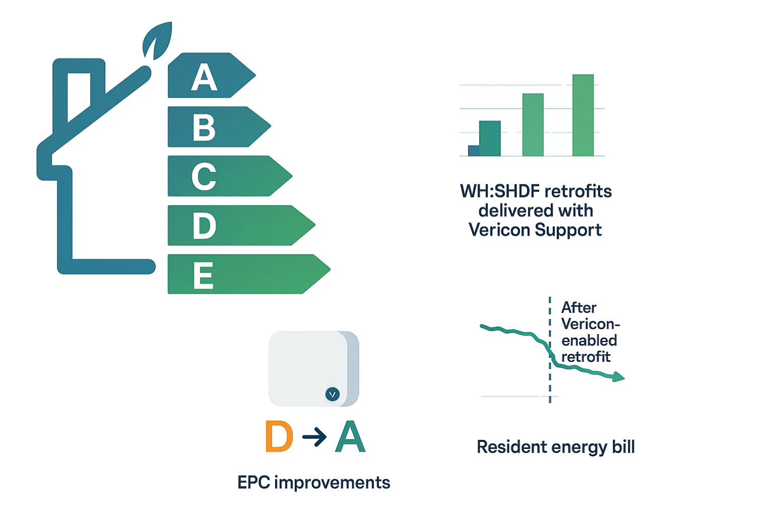 Vericon supports housing providers with a fully funded, SHDF-ready platform that meets DESNZ and PAS2035 standards—while improving resident wellbeing – giving you the insights and evidence you need to deliver successful retrofit outcomes with zero upfront cost.